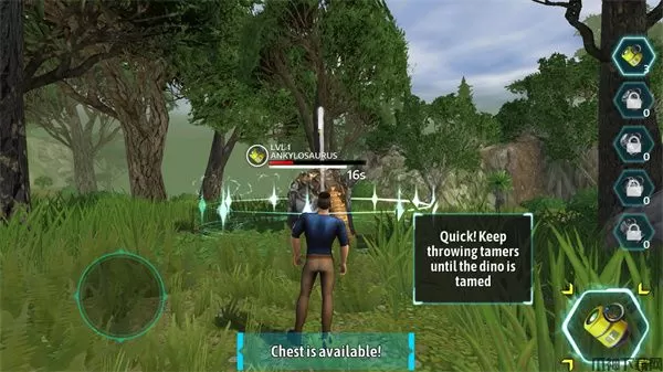 3、等靠近恐龙时就可以丢出驯服的设备;
