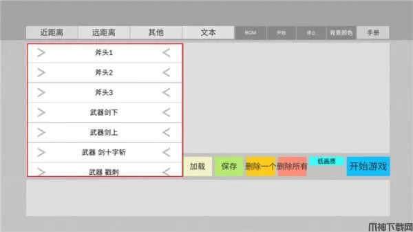 2、在“近距离”中,可以选择:斧头1、武器剑上、武器剑下等,对其进行设置;