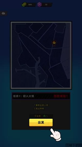 玩家点击右下角救火图标,即可进入任务关卡页面,点击出发即可开始救火。