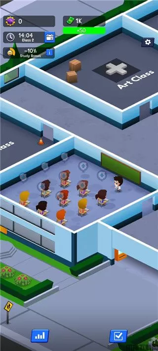 空闲高中大亨官方版是一款非常有趣的校园模拟手游,游戏采用卡通可爱的画风,所有人物都是Q版卡通的样子,给玩家带来独具特色的游戏体验。游戏中玩家是一间学校的校长,你需要欢迎学生入学,在这里招募老师,建设各种校园设施。通过不同的方式,不断提升学生们的成绩,提高学校的知名度,学校知名度越高,学生就会越多哦。