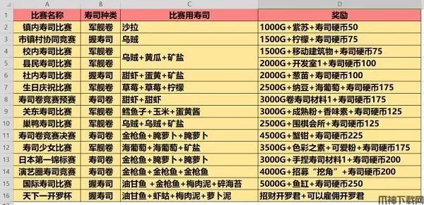 在海鲜寿司物语中,玩家可以参加很多的比赛,相信有很多的玩家还不是特别的清楚但是具体有什么比赛,下面小编就为玩家整理了一份关于海鲜寿司物语比赛的攻略,里面包含了比赛项目、比赛奖励等,希望能帮到大家。