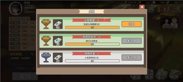 3、根据父母的期望进行成长,完成任务。