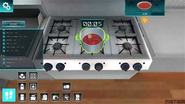 3、其制作的过程可谓十分真实,几乎都应用了真实的物理原理,举几个例子,像是切菜需要按照要求进行等份质量的切取,像是煎肉一段时间后需要拿着铲子进行翻面,像是给食物上调味料需要对准对应的位置等;