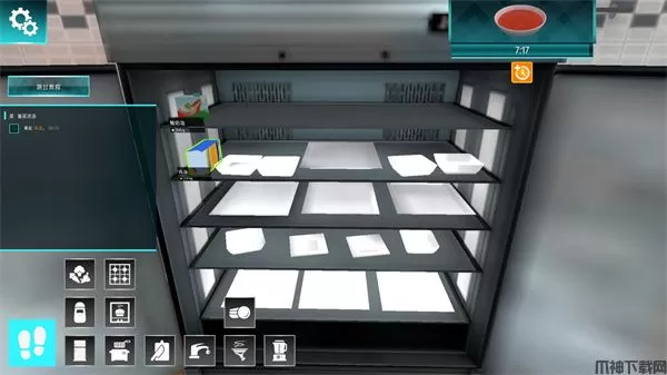 4、厨房卫生,打烊后,玩家可以根据需要进行厨房的清理工作,包括污渍的清理以及食材等道具的摆放整理等;