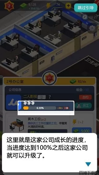 如图所示,这里是引入公司成长的进度,当进度达到100%之后这家公司就可以升级了。
