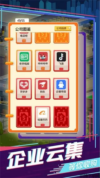这里有你熟知的各种企业,但他们还处在发展的阶段,是时候考验你的眼光了,挑选你认为有潜力的公司,进驻你的大厦,携手向前。