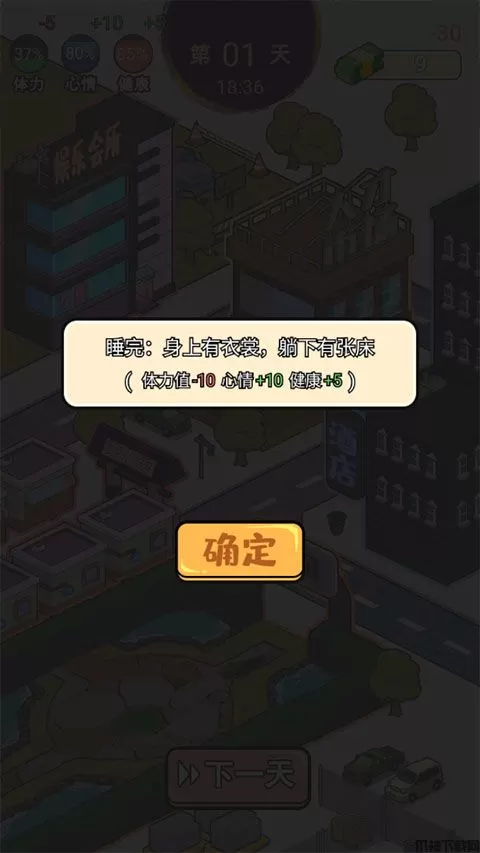 3、充足的食物和睡眠环境可以影响自己的体力,例如可以在“美食街”购买食物开增加体力值。