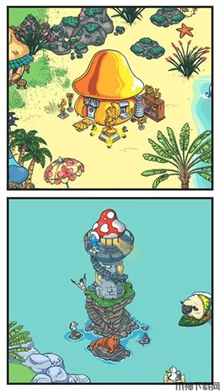 4、从头开始构建一个完整的蓝精灵村庄,有限的创意是你的唯一限制;