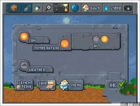 1、通过令人惊叹的像素艺术,发挥想象力创造属于你自己的世界,和各种元素和生物一起游戏,整个世界由你来创造或毁灭,能阻碍你的只有你的想象力!