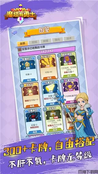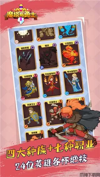 魔塔与勇士最新版是一款独特的卡牌对战游戏,游戏以西方魔幻为题材,并融合了Roguelike、CCG、自走棋等丰富玩法,多种玩法随你轻松体验,致力于为玩家带来全新的策略游戏体验。游戏上手非常简单,玩家只需搭配5个英雄即可体验不同的对战乐趣,你可以自由构筑千变万化的卡组,打造你的最强队伍。同时,游戏中的英雄无强弱,卡牌无等级,这十分考验你的策略能力。并且游戏在PVE很肉鸽,PVP够刺激,不肝不氪,五分钟一局,随时随地展开一场酣畅对决!值得一提的是魔塔与勇士游戏以独创的同步回合制玩法为核心,通过高精度的画面以及生动形象的Q版人物进行表现。配合属性进阶系统、装备进阶系统、技能封印系统、副本系统等众多极具创新性的功能玩法,让你享受充满多样性的精彩玩法。其次,游戏的场景全部使用色彩更鲜明、更具亲和力的2D方式表现,将2D场景与3D战斗相结合,随时随地体验独特的对战乐趣和激情。此外,魔塔与勇士游戏中拥有四大种族以及七大职业,多种英雄可供选择,且每一个英雄都生怀各种绝技,感兴趣的小伙伴快来下载体验一下吧。