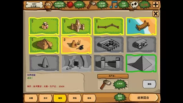 图中的这个就是世界奇迹,如果在120个回合内建造出来就可以通关不过这个我觉得挺难的,因为你可以看到我已经玩到124个回合了才建造了这么点。