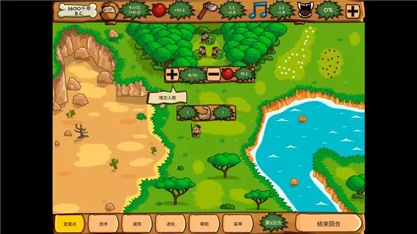 在这款游戏中你扮演的是一个幕后策略家,你要做的就是通过自己的分配一步步的把自己的部落扩大,进步科学,壮大自己控制的部落,防御敌国一步步成为霸主。