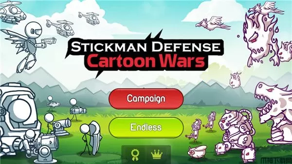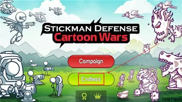 1、在本站下载火柴人防御卡通战争游戏,点击“endless”开始游戏;