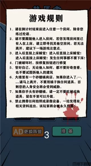 4、进入游戏后,玩家需要在规定的时间内寻找一个房间躺在床上