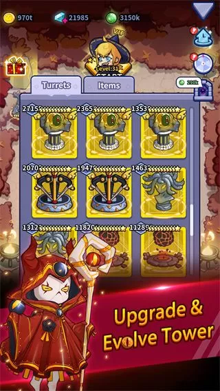 放置塔防幽林守卫者中,升级你的防御塔,进化以获得更强大的防御塔
