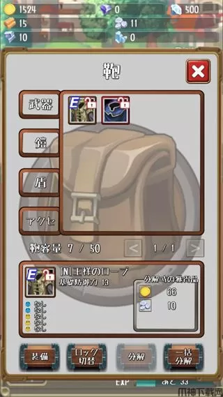 4、背包中我们能看到自己刷怪掉落的武器装备,详细的了解他们的装备参数从而自己进行穿戴。