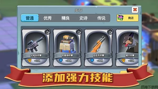 同时,还可以招募一些士兵,这些士兵不仅仅有强有力的本人战斗力,也会让你的军队给予强大的加持,你还是可以在每一次作战前应用专业技能,这可以使你的军队更为勇猛强劲,带领他们反击,消灭入侵的僵尸。并且,当我们有了足够的资源时,也是可以给自己的英雄和技能来进行升级的,等级越高我们的伤害也就越高。整体来说,末世避难所僵尸防线这款游戏不管是在玩法上还是在画面上都非常的吸引人,尤其是还结合了卡牌、特色兵种及海量关卡的挑战项目来增加游戏的趣味性和策略性,喜欢的朋友可以下载试试哦!