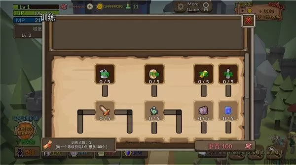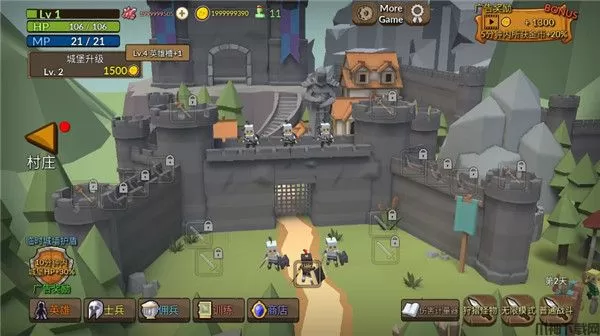 2、使用在村庄力获的装备和资源,强化城墙,保护城堡。