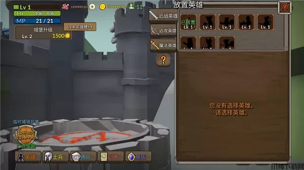 4、选择英雄槽可以放置或者升级英雄。