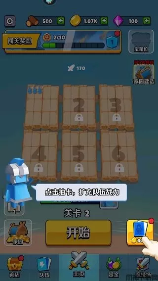 3、闯关胜利后,领取奖励,回到主界面,在这里点击抽卡,扩充队伍的战力;