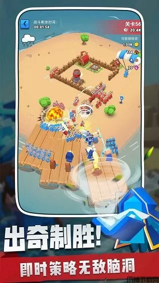 奇兵指挥官是一款最新上线的策略塔防类型的小游戏。首先,游戏在画风上采用抽象风格,通过游戏当中的红蓝小人打架描述了一场世纪争斗。另外,游戏在玩法上也是比较简单,玩家作为一座岛屿的指挥官,需指挥你的队伍开启征服之路,具体实施可通过对外扩张,争夺宝贵资源控制权。整体上游戏都是以闯关模式为主,但是随着关卡的增加,敌人的实力也会越来越强,玩家需要通过不同的方式去打败对手。除此之外,游戏有不同兵种可以组合搭配,以卡牌收集为主的兵种养成体系,将为游戏的战略意图提供更多烧脑对局,让玩家在游玩这款小游戏时候,多了一丝烧脑的韵味。并且游戏内兵种丰富,每个兵种都有不一样的攻击方式,玩家可以自由搭配,喜欢这款游戏的玩家赶快来下载玩一玩吧!