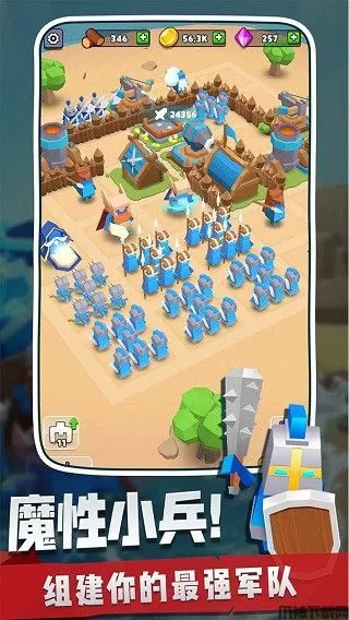 1、在奇兵指挥官游戏中建造属于你的,不断收集更多的小兵进行战斗,将这些小兵进行升级组建属于你的军队。
