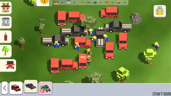3、选择好车辆后下方会有一小行字显示当前车辆的属性,比如小编选择的赛车具有加速的功能,点击图中任意位置即可将车布局在地图中啦!
