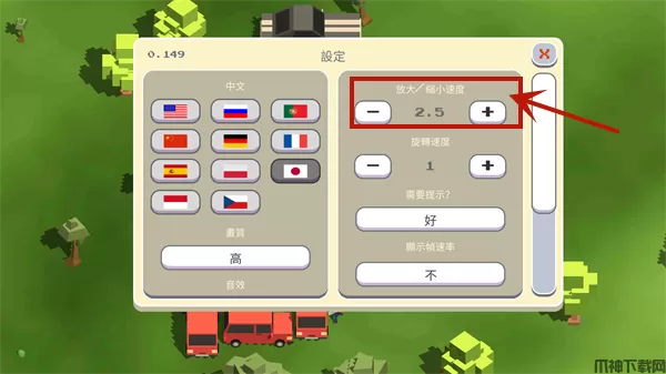 2、进入设置界面可以看到右侧可以放大/缩小速度,只需按需调到自己想要的速度即可。