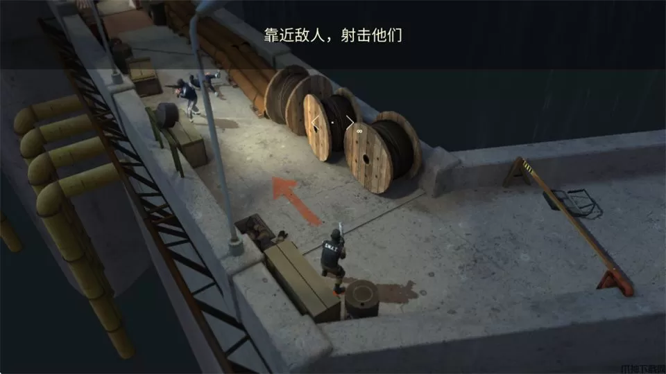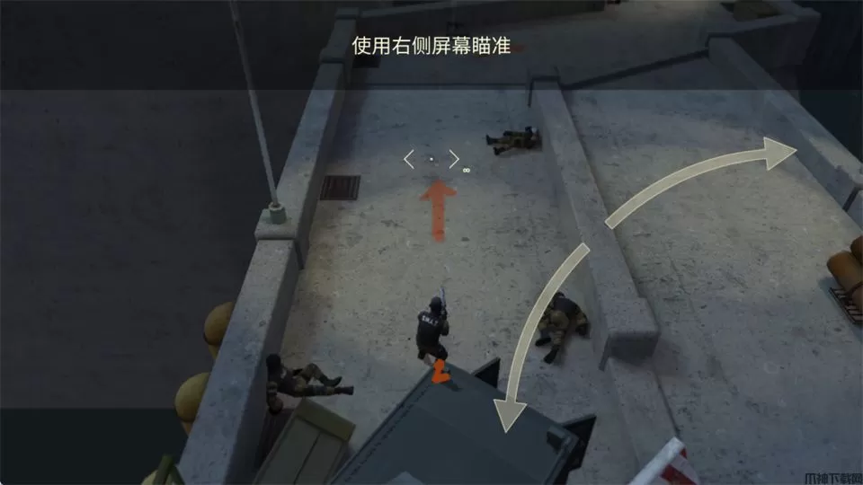 1、在本站下载安装好游戏后,打开进入教程引导,左下角轮盘控制角色前进移动,使用右侧屏幕瞄准。