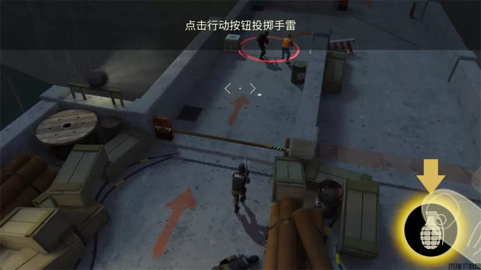 5、敌人较多时,还可以点击右侧炸弹图标,瞄准并投掷手雷,开始自由探索射击吧。