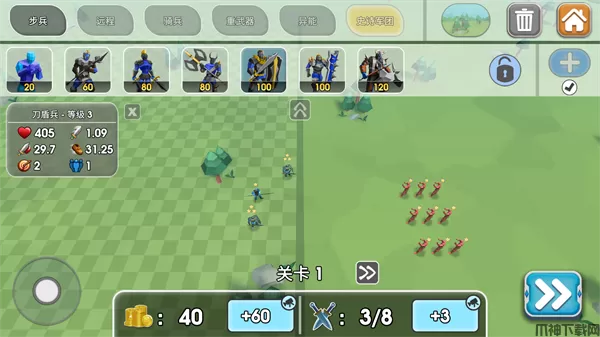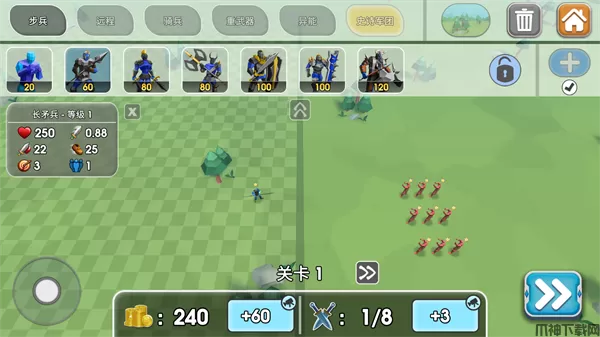 (2)盾兵Shield 我个人很喜欢,满级以后防御最高,而且速度也不掉,适合面对敌方远程多时,放最前面挡远程。