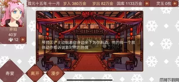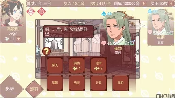 流程参考大家的第一个老婆崔颖,宫内会发生各种各样的残酷宫斗事件,比宫外的死亡率高很多,而且后宫哪有御书房的朝臣好玩(并不是)臣民未满18不可以宠幸,怀孕不可以宠幸