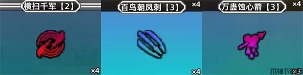这里推荐横扫千军、百鸟朝凤刺和万蛊蚀心箭。横扫千军和百鸟朝凤刺都是消耗较低的强力技能,万蛊蚀心箭可以降低对方40%攻击力12秒,单挑强力技能。