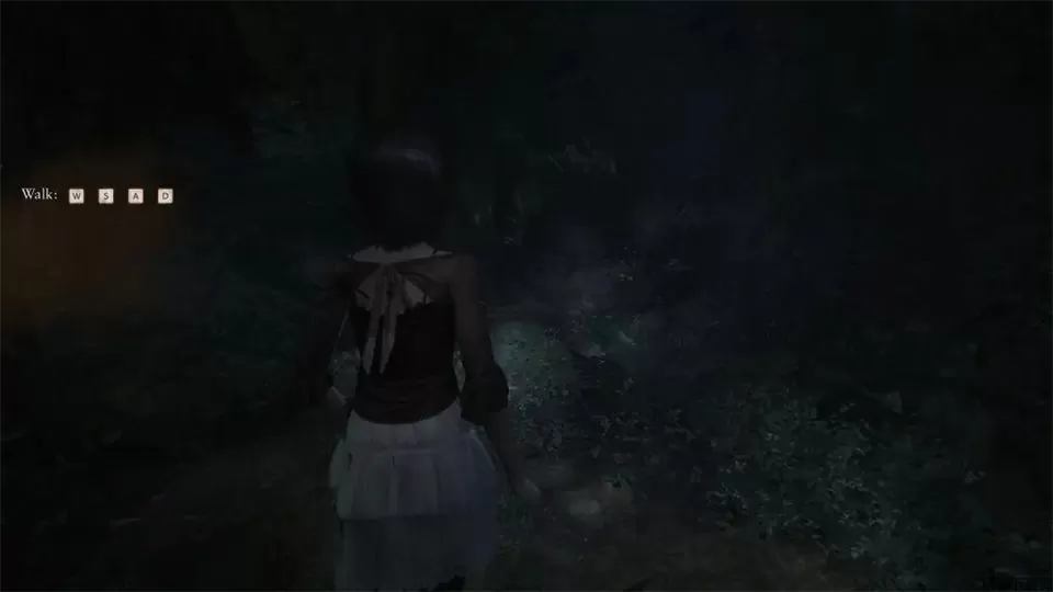 开场动画后,你将操控站在黑暗森林中央的澪。茧消失了。沿着小路继续前进。