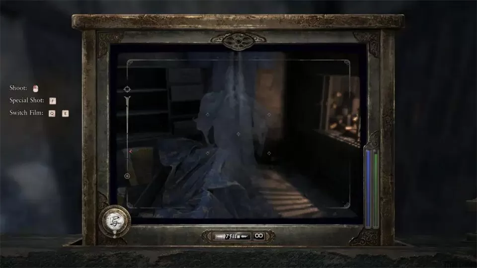 暗箱是游戏中你的主要武器和解谜工具。当你举起相机时,还能看到当前的生命值和意志力。
