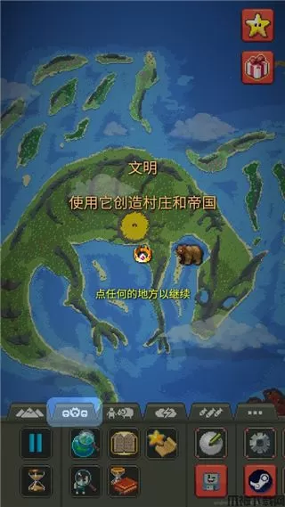 4、塑造出不同的元素玩法,设置好相互开战的全新文明,发展并繁荣,创造出一些魔法生物,观察一些威胁生存的生命。