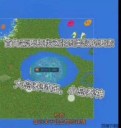 1、首先需要有一个和图中类似的地图,大岛养村庄,小岛养神。