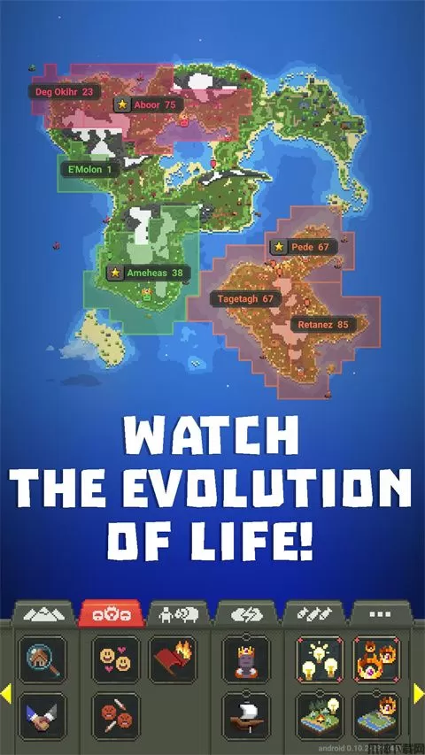 1、打造新纪元,创造一个文明的世界,用不同的工具塑造出绘画,利用智能像素进行上色,在模拟大陆上感受生物的力量。