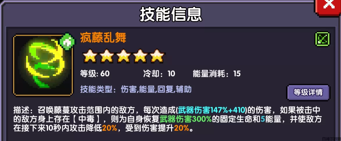 【疯藤乱舞】藤鞭的数量增加,直接增伤,减速可忽略