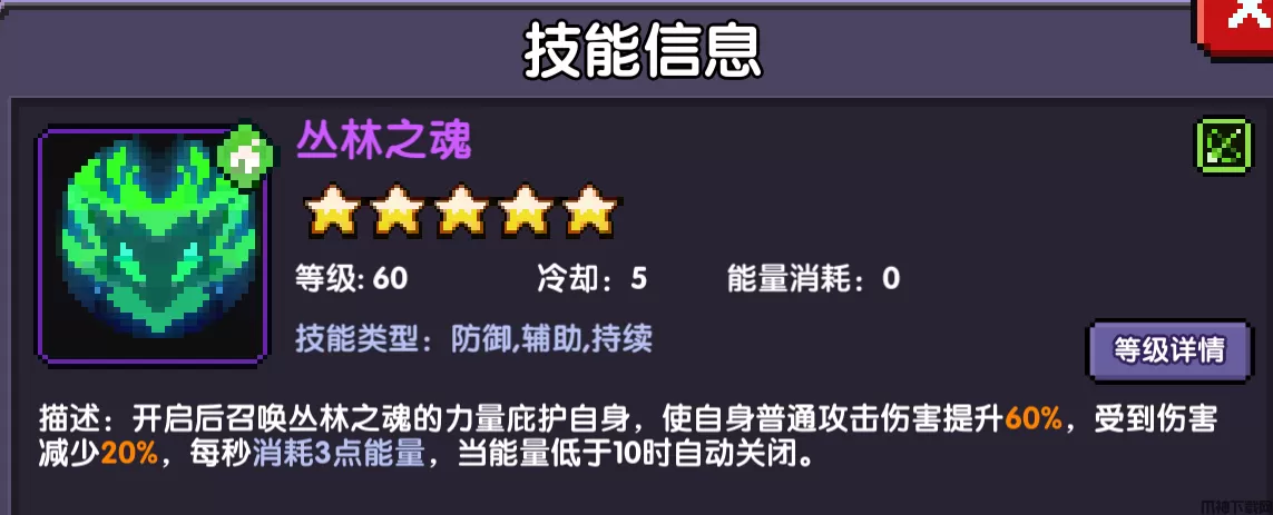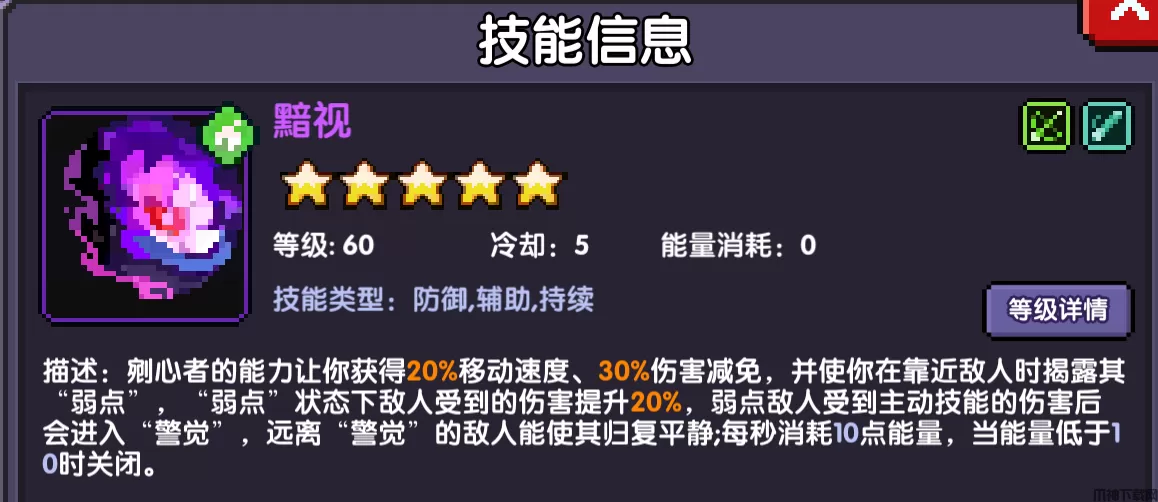 增益开关技能,提供60%普伤,20减伤