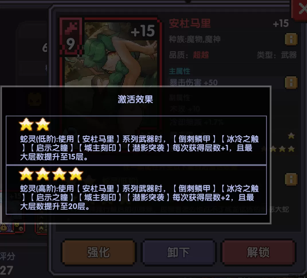 蛇毒Ⅱ:普通攻击对敌人造成伤害时将为敌人附加【蛇毒Ⅱ】(受到的木属性伤害增加4.5%,该效果会被更高等级的【蛇毒】覆盖)