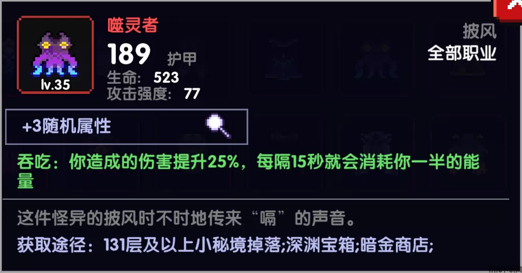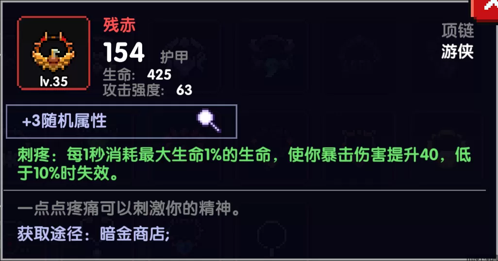 残赤,提供40暴伤,但每秒消耗1%最大生命