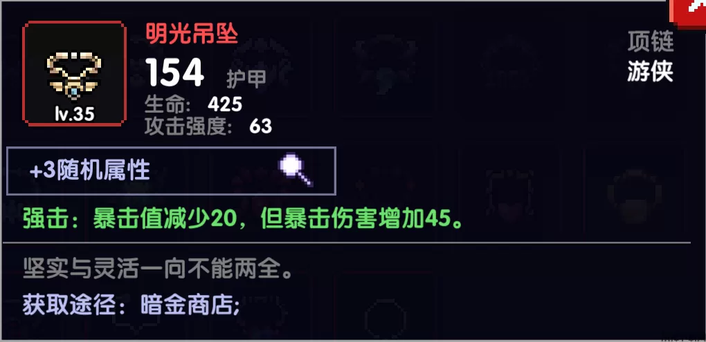 明光吊坠,暴击值够的情况下残赤的上位,提供45暴伤但减少20暴击值