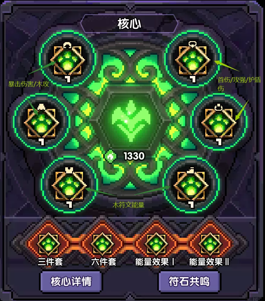 使用这套搭配,可能会缺暴击值,不过可以通过技能或魂力补充,只玩木系的小伙伴可以考虑把罐罐的暴伤洗成木攻