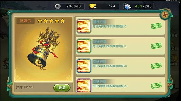 驱妖铃可以提高每日免费扫荡次数