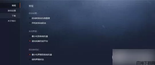 首先先给大家介绍一下最右上角左数第二个平台的设置点击它会出现以下界面:左边会列出常规、游戏设置、下载和关于我们四个选项。