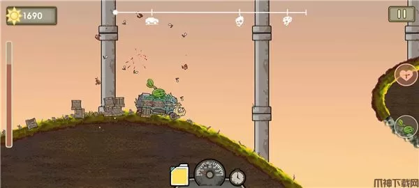 1、将你熟悉的植物装上战车!豌豆、火焰、玉米炮等多种“植物武器”随意搭配,打造个性化战斗配置。