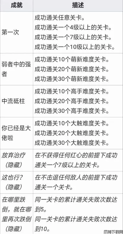 在不获得任何红心的前提下成功通关一个7级关卡。