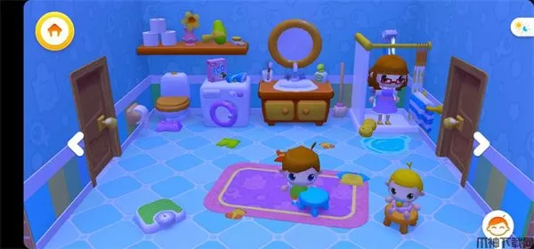 4、在浴室当中我们就可以帮小朋友洗澡、洗漱等等;