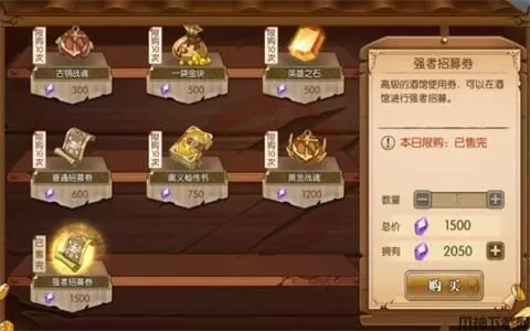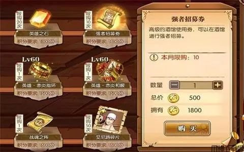 在游戏的这个晶魂商店中,每天都可以兑换一张强者招募券。另外彩钻商店也可以直接购买强者招募券,比较贵28元一张。所以不推荐花钱直接购买,就算要买,也是游戏中的一些礼包,相对要划算一些。